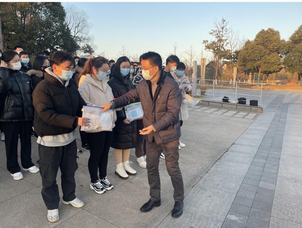 王伟亲切地询问同学们考研备考情况,并提醒大家及时添加衣物,注意保暖,合理饮食,科学作息,调整心情,轻装上阵。随后为同学们发放爱心礼包,礼包中有口罩,暖宝宝,巧克力和文具等物品,每位同学同时也都收到了一份充满浓浓祝愿的贺卡,这是对他们无限的鼓励,祝福和期待。