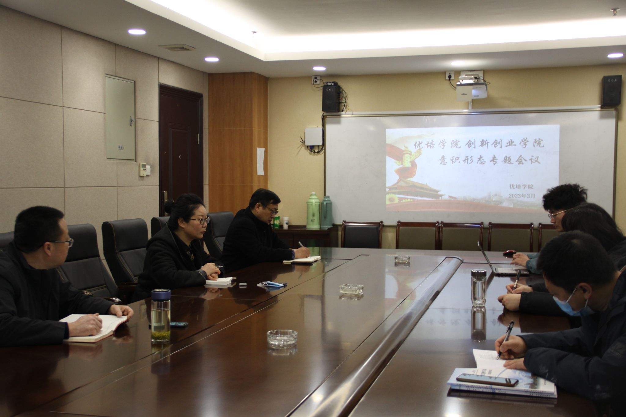 3月22日上午,在行政楼328会议室,PA视讯集团官网召开意识形态工作和师德师风建设专题会议。会议由优培公司党总支书记李刚主持,PA视讯集团官网全体教职员工参会。