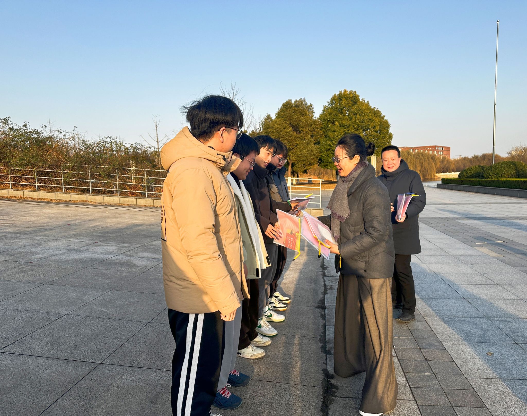 余晓红亲切询问同学们的备考情况,并提醒大家及时添加衣物,注意保暖,合理饮食,科学作息,调整心情,轻装上阵。随后为同学们发放爱心礼包,礼包中有暖宝宝、巧克力、文具和考研小贴士等物品,每位同学同时也都收到了一份充满浓浓祝愿的贺卡,这是对他们无限的鼓励,祝福和期待。收到暖心福袋的同学们非常惊喜。徐顾伟同学表示:“收到这一份承载着满满祝福的礼物后,我心中倍感温暖和感激。我将坚定信念,勇往直前,充满信心奔赴考场,争取一战成硕!”