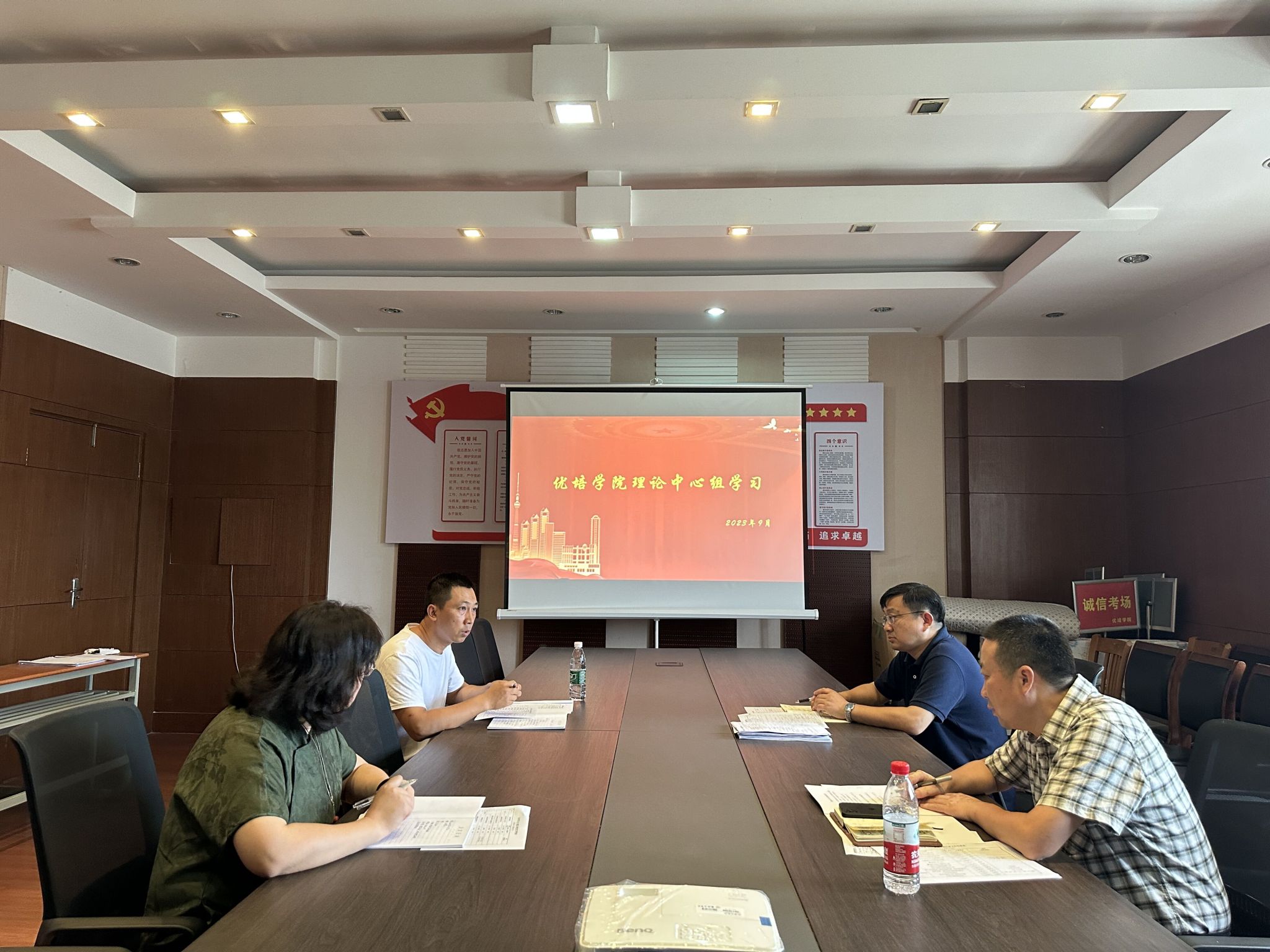 9月18日上午,在北校区知行楼303,优培公司党总支理论学习中心组召开专题学习会,党总支书记李刚主持,理论学习中心组全体成员参加。