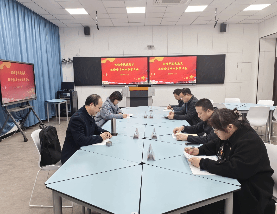 11月16日下午,在南校区博学楼D314,优培公司党总支理论学习中心组开展2023年秋学期第三次学习研讨。公司党委第三巡学旁听组组长钱长锋、成员束安娣到会指导,公司党总支书记李刚主持,理论学习中心组全体成员参加。