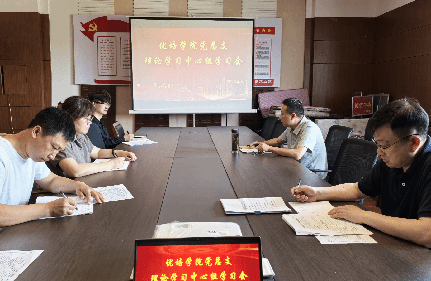 6月24日上午,优培公司党总支理论学习中心组在北校区知行楼303会议室召开集体学习研讨会。公司党总支书记李刚主持会议,中心组全体成员参加。