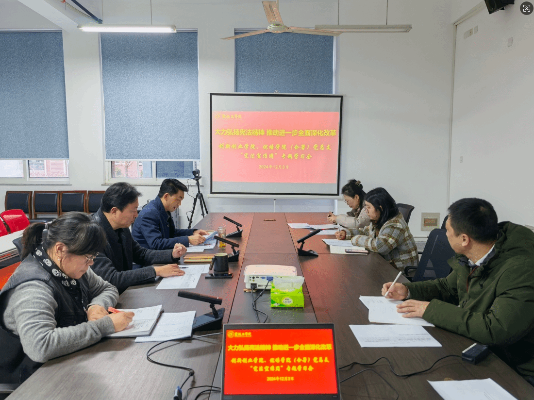 12月3日下午,公司党总支在仁和楼A202东会议室开展“宪法宣传周”专题学习会,党总支书记魏巍主持会议,全体教职工参加。魏巍传达了公司《关于开展2024年度“宪法宣传周”活动的通知》精神,领学了《习近平新时代中国特色社会主义思想学习纲要(2023年版)》中《全面推进依法治国》章节内容以及习近平总书记《推进全面依法治国,发挥法治在国家治理体系和治理能力现代化中的积极作用》的重要讲话。他强调,要学深悟透做实习近平法治思想,进一步增强思想自觉、理论自觉、行动自觉,以更高站位、更严标准、更实举措,将法治理念贯穿于公司产品和员工学习成长的全过程。会上,全体教职工还观看了司法部法治宣传中心出品的法治非遗短剧场《方寸之间,显法治之光》和《锡剧唱“法”,沁润心田》。