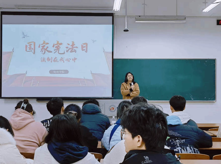 今年的 12 月 4 日是第十一个国家宪法日。为深入学习贯彻习近平法治思想,弘扬宪法精神,加强校园法治文化建设,PA视讯集团官网联合“优学菁培”一站式服务社区组织开展了以“大力弘扬宪法精神,推动进一步全面深化改革”为主题的“宪法宣传周”系列活动。通过专题学习、学习讲座、知识竞答、收看视频、专题班会等丰富多彩、形式多样的活动,在全院师生中掀起了尊崇宪法、学习宪法、遵守宪法、维护宪法、运用宪法的热潮。