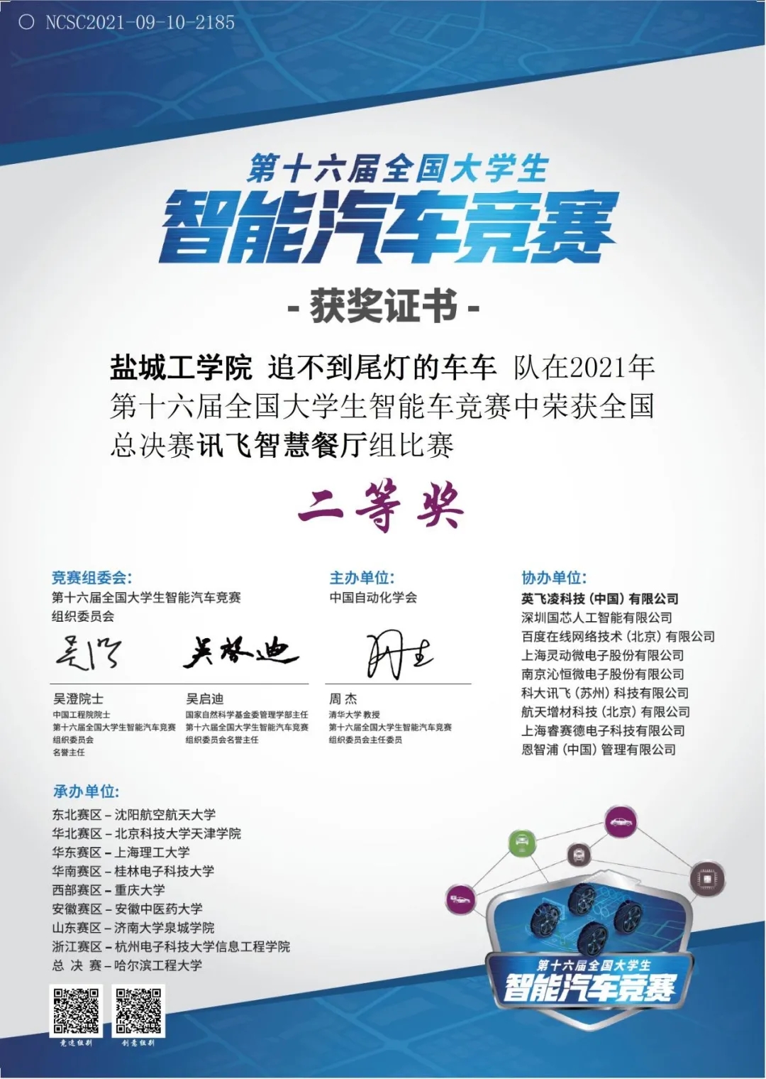 近日,第十六届全国老员工智能车竞赛全国总决赛结果公布,公司参赛师生克服重重困难,与来自清华大学、北京科技大学、哈尔滨工业大学、西北工业大学、华中科技大学、同济大学等高校选手激烈角逐,最终获得二等奖2项。