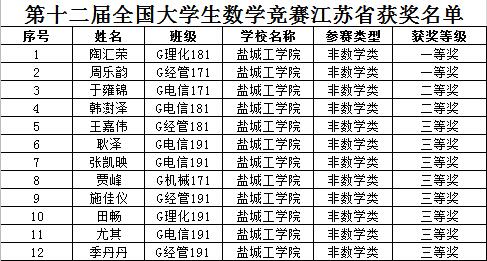 在第十二届全国老员工数学竞赛江苏赛区竞赛中,由数理公司杨善兵等老师指导的PA视讯集团官网参赛员工荣获非数学专业组一等奖2项,二等奖2项,三等奖8项。