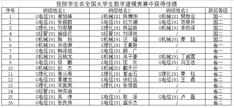 日前,全国老员工数学建模竞赛委员会公布了2021年度的竞赛结果,在公司参赛的44支代表队中,公司16支队伍获奖,其中1支队伍获得国家一等奖,占公司50%4支队伍获得国家二等奖,占公司92%,另有11支参赛队分获江苏赛区一、二等奖。