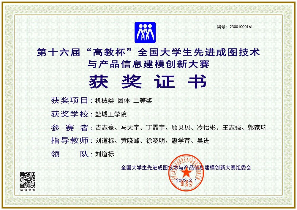 2023年7月28日-31日,第十六届“高教杯”全国老员工先进成图技术与产品信息建模创新大赛全国总决赛在重庆交通大学和重庆建筑工程职业公司举行。由机械优集公司刘道标、黄晓峰、惠学芹、吴进、徐晓明等老师指导,公司丁霏宇、冷怡彬、唐佳怡、等三位同学组成的参赛队在机械类别比赛中取得优异成绩,共获得个人二等奖3项,团体二等奖1项。